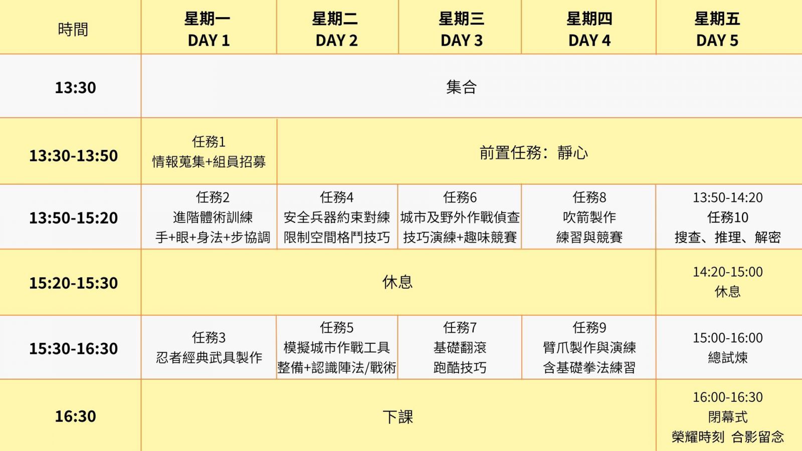 進入忍者的世界,開始探索自我潛能,理解自己的身體、反應與情緒。學會翻滾、跳躍、攀爬等基礎技能,建立自信。