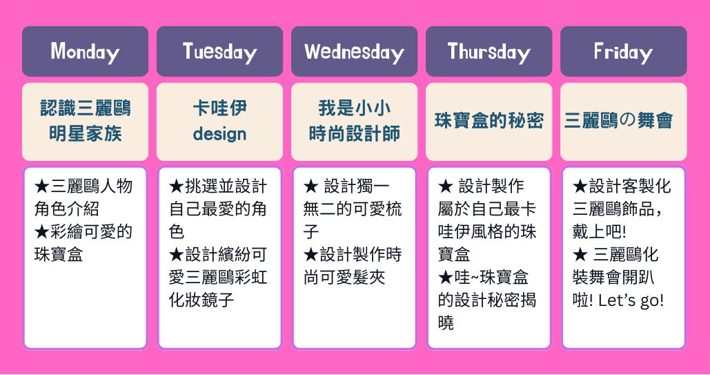 哇~讓三麗鷗好朋友陪你一起認識更多其他的可愛角色,小朋友~選出自己最喜愛的角色,設計成自己獨一無二的飾品吧!!