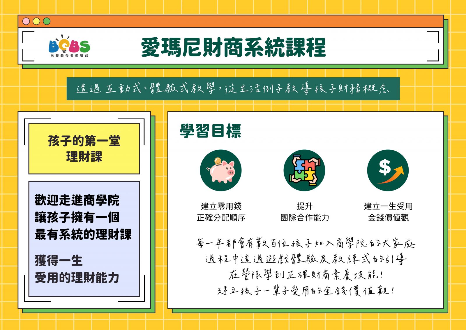 在這堂課裡,我們將帶孩子從「玩得開心」走向「用得聰明」,透過精心設計的愛瑪尼財商桌遊,引導孩子學會存錢、花錢、賺錢、投資與捐贈,從生活中的真實情境出發,打造他們未來人生的財商基礎,玩出屬於自己的幸福藍圖!