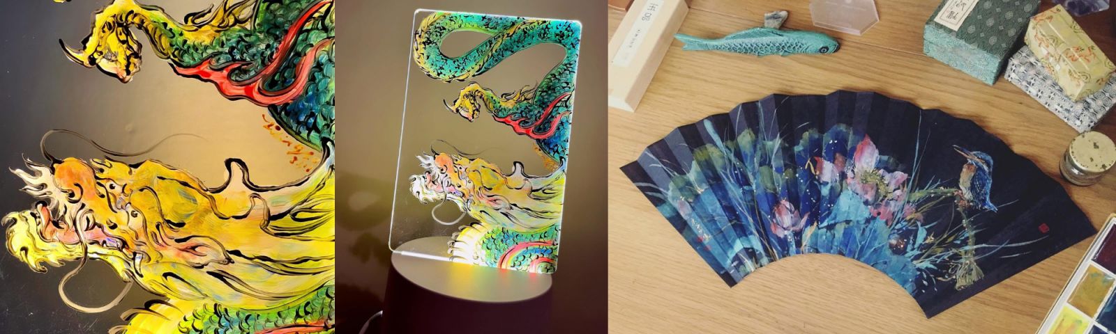 運用不同的基底與材料也可以畫出有水墨風格的作品,而且還很有用
