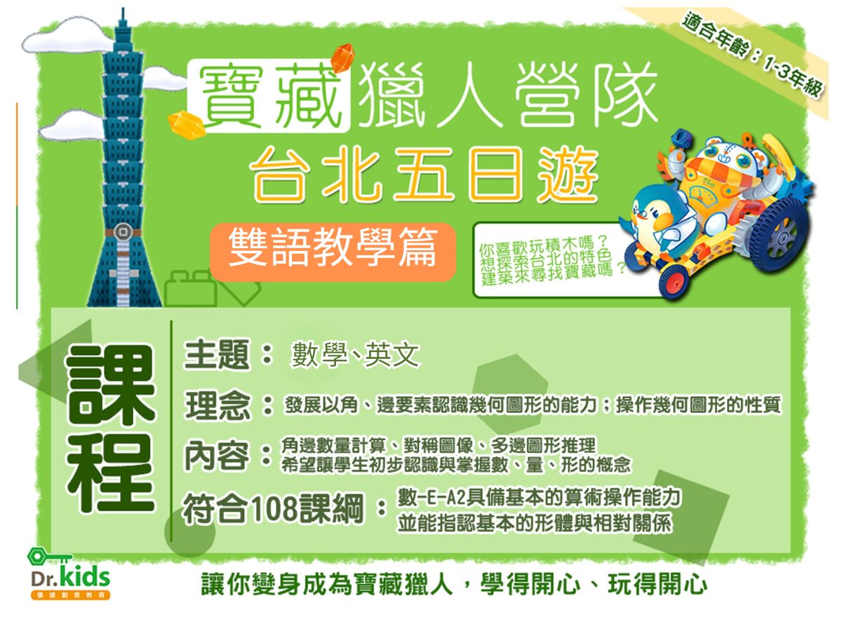 透過雙語環境介紹主題特色建築,了解建築的文化背景, 並透過積木的製作,清楚了解物體的結構以及其蘊含的相關概念,