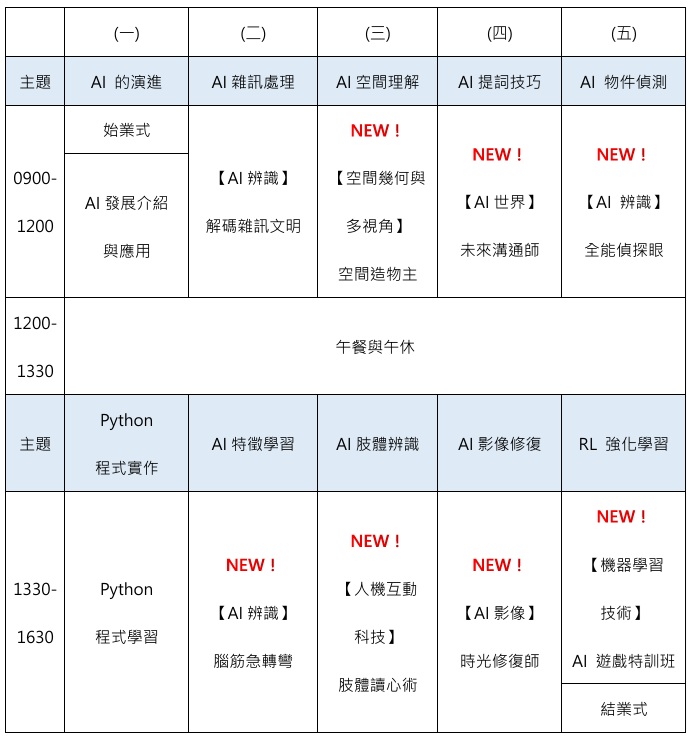 • 目的: 透過課程,帶領孩子們走進AI的世界,了解AI發展的過程及當下流行的應用。