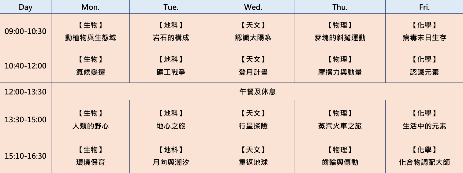 從微觀的生物到浩瀚的宇宙,從物質的化學變化到力學的物理原理,學生們將從入門開始,親手揭開自然科學的神秘面紗。